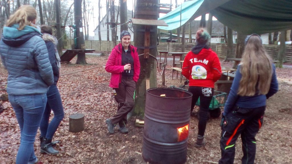 I hope it will be a good job, but from my point of view, it will be like this. We’re outside all day long, getting some fresh air, lots of sun, we’re doing again a sportive activity, could be worse than that. Being outside all day long includes sunny days, but even rainy days. Yesterday was one of the rainy ones. No sun during the whole day. Thank god there was nearly no one, who wants to climb in the woods. So we trained ourself a little bit. Getting familiar with the parcours, trained some evacuations and played some cards inside during the heavy rain.